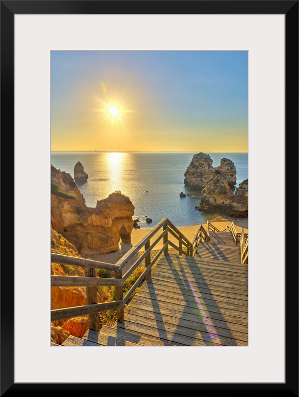 <p>Portugal, Algarve, Lagos, sunrise over Camilo Beach (Praia do Camilo)</p>