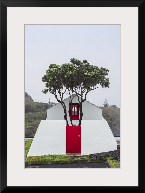 <p>Portugal, Azores, Pico Island, Lajes do Pico, harborfront building</p>