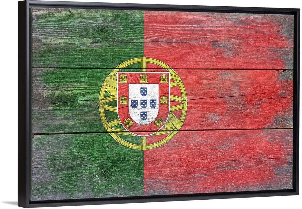 <p>The flag of Portugal with a weathered wooden board effect.</p>