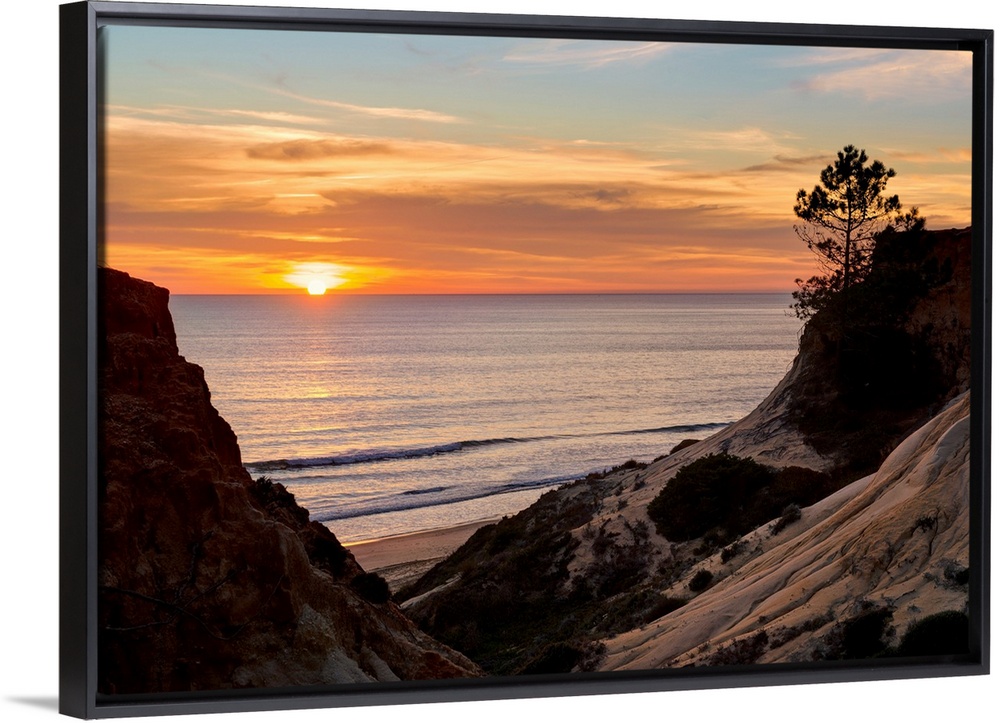 <p>Portugal, Faro, Albufeira, Algarve, Praia da Falesia beach at sunset.</p>