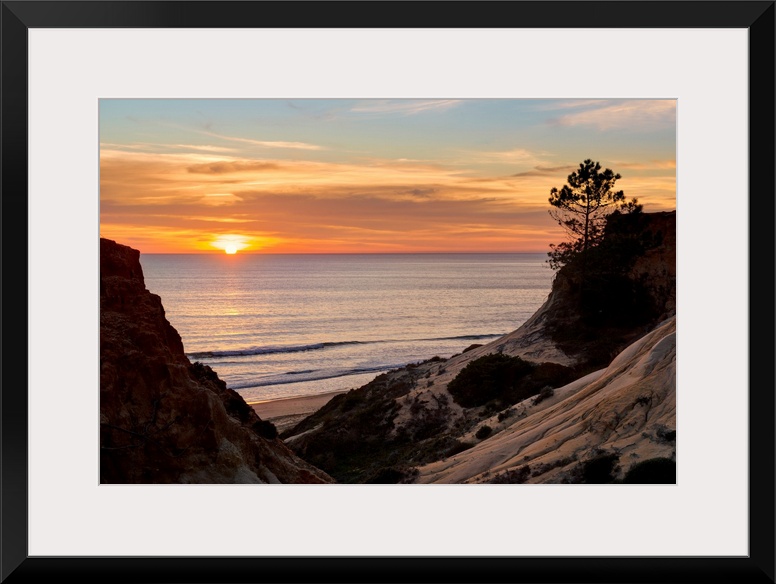 <p>Portugal, Faro, Albufeira, Algarve, Praia da Falesia beach at sunset.</p>