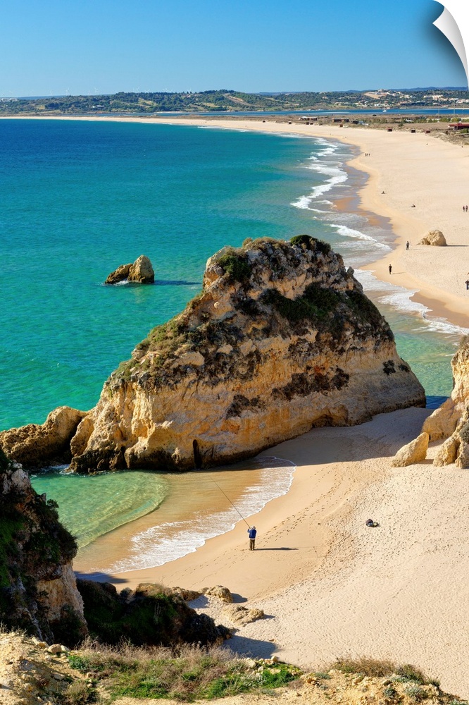 <p>Portugal, Faro, Algarve, Alvor, Local man fishing at Praia de Alvor Beach in winter.</p>