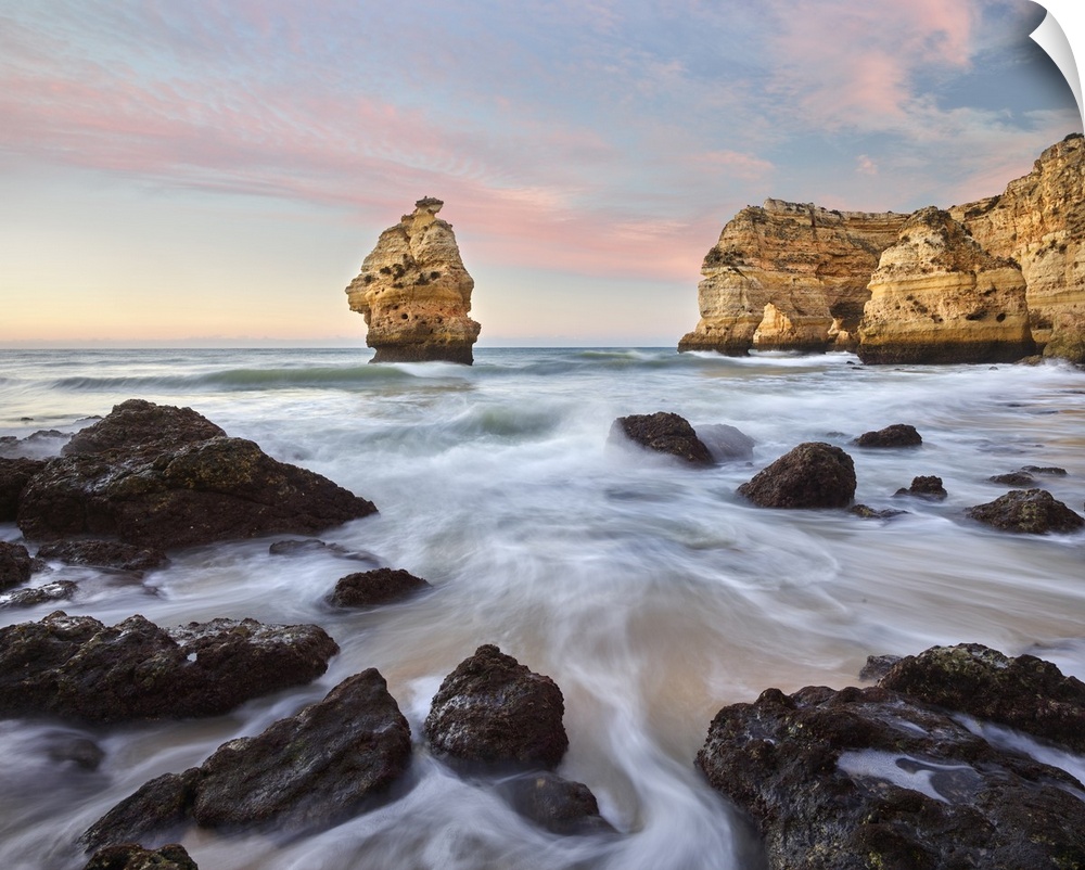 <p>Portugal, Faro, Lagoa, Atlantic ocean, Algarve, Rocky coast at Praia da Mesquita.</p>