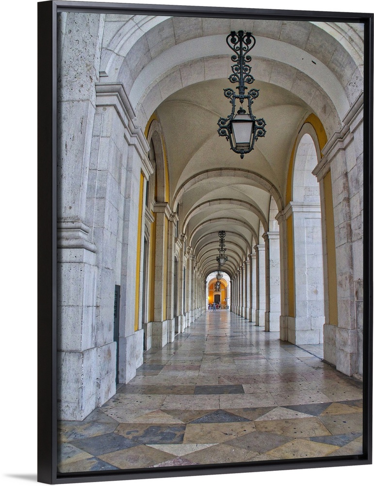 <p>Portugal, Lisbon. Columns of the Arcade of Commerce Square.</p>