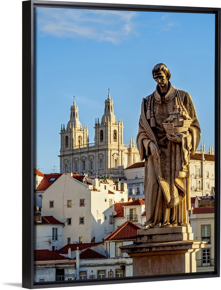<p>Portugal, Lisbon, Statue of Sao Vicente and the Monastery of Sao Vicente de Fora.</p>