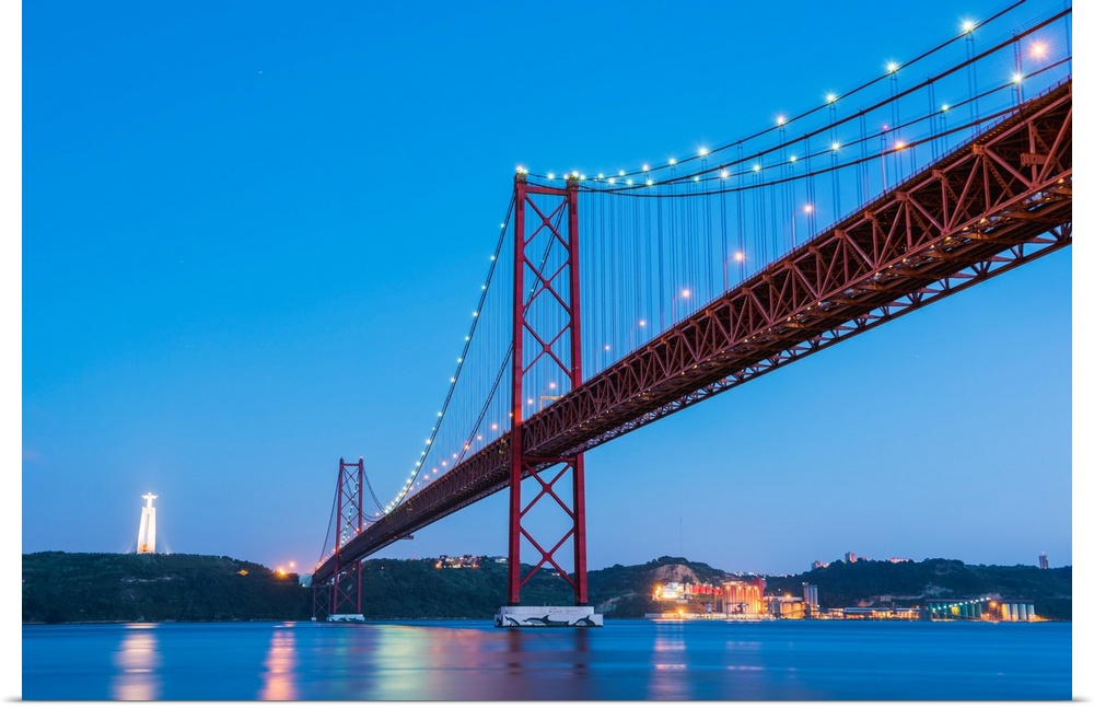 <p>Portugal, Lisbon. The 25 de Abril Bridge across the Tagus river and Cristo Rei (Christ the King).</p>
