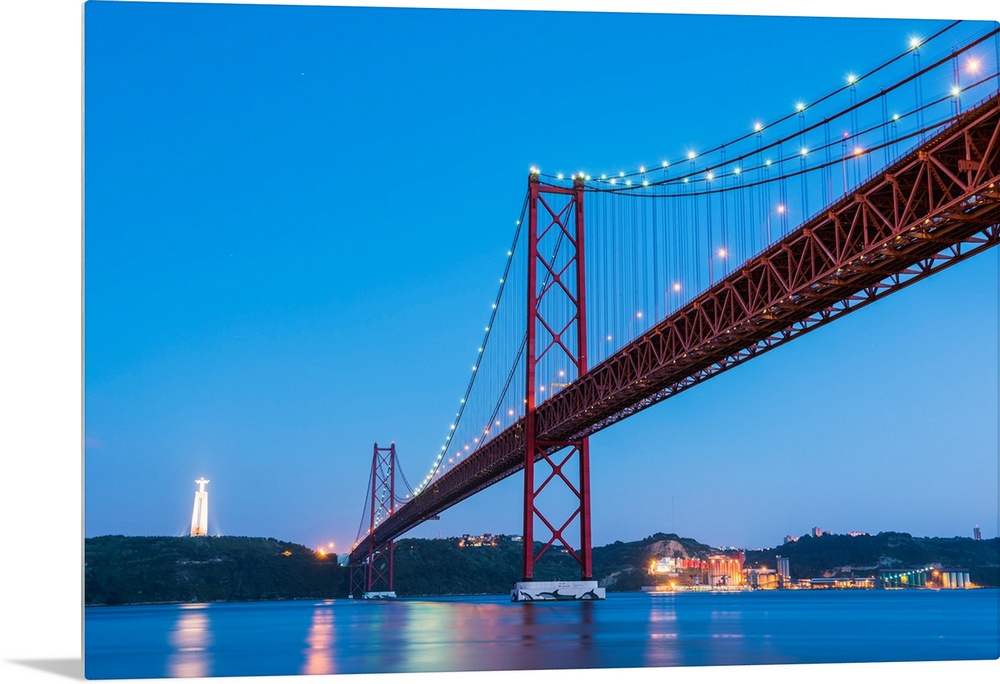 <p>Portugal, Lisbon. The 25 de Abril Bridge across the Tagus river and Cristo Rei (Christ the King).</p>