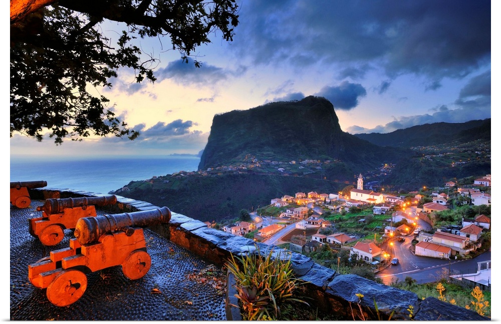 <p>Portugal, Madeira, Madeira island, Atlantic ocean, North coast, Faial fortress towards Penha d'Aguia (Eagle Rock)</p>