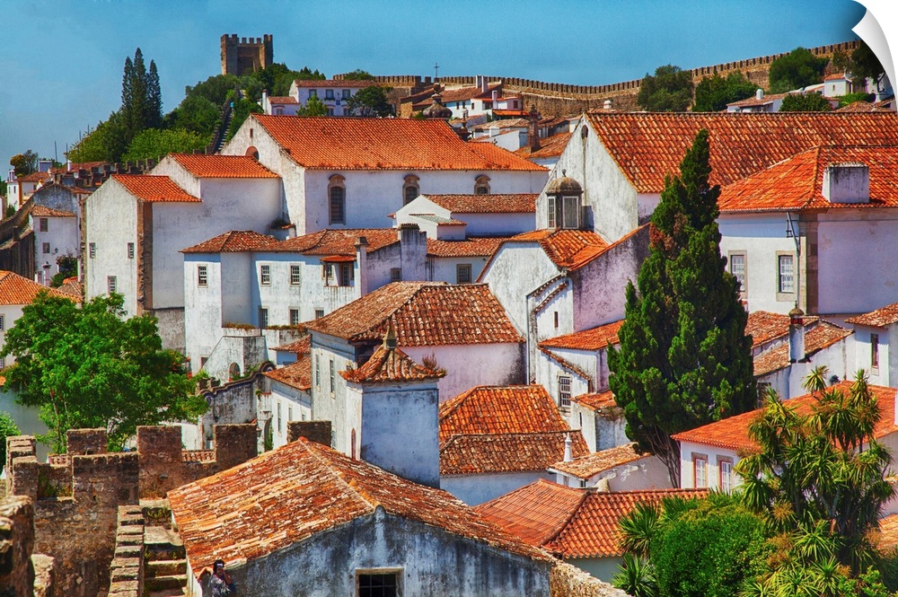 <p>Portugal, Obidos, Elevated View of the town with the Red Roofs and special architecture of the town.</p>
