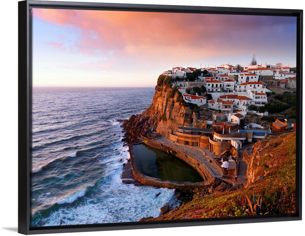 <p>Portugal, Sintra, Azehas do Mar, Overview of town at dusk</p>