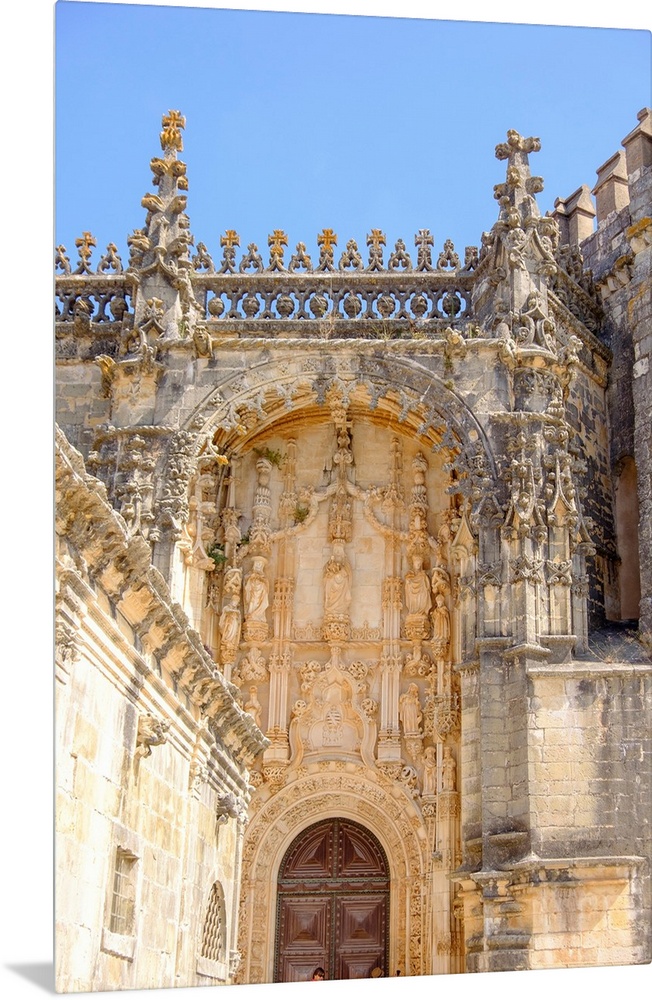 <p>Portugal, Tomar. Tomar Castle, Knights of the Templar fortress, castle and convent. Convent of Knights of Christ. Castle Cathedral South portal. 1515 AD.</p>