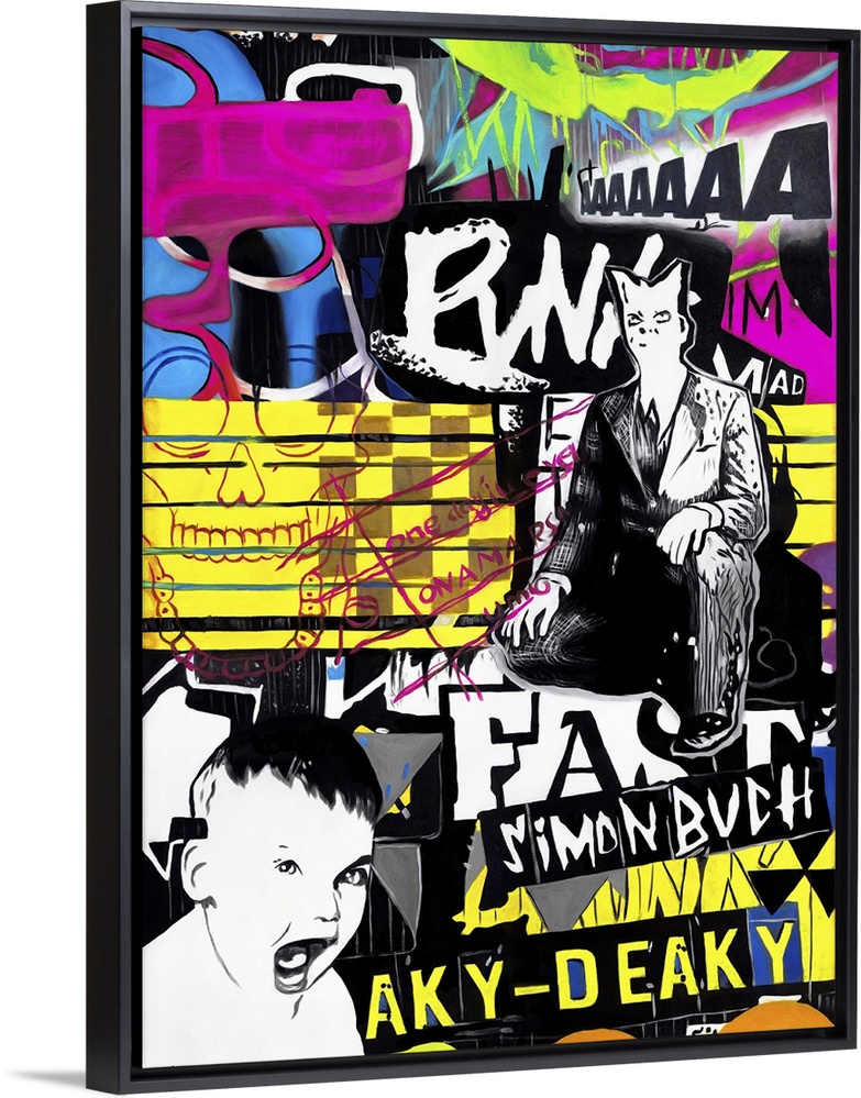 <p>A vertical abstract painting in a graffiti style.</p>