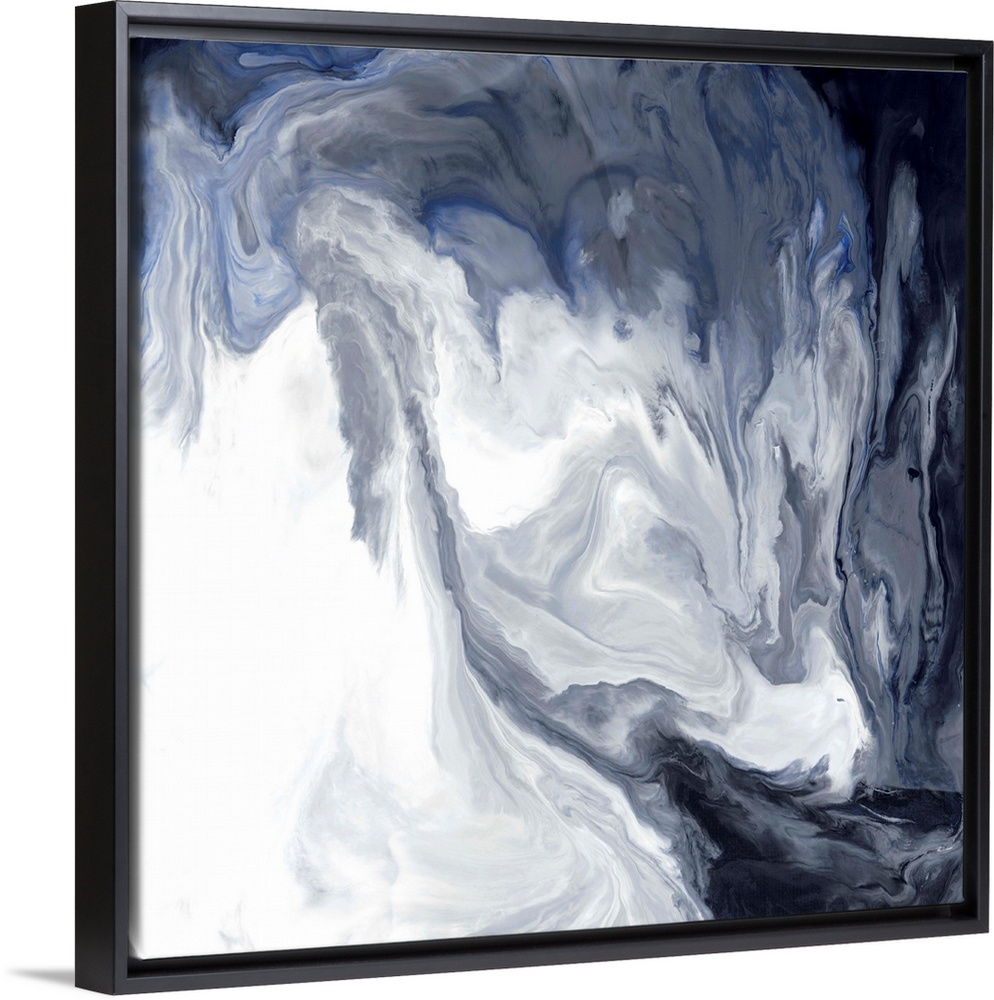 <p>Gray, white, blue, and black hues marbling together on a square canvas.</p>