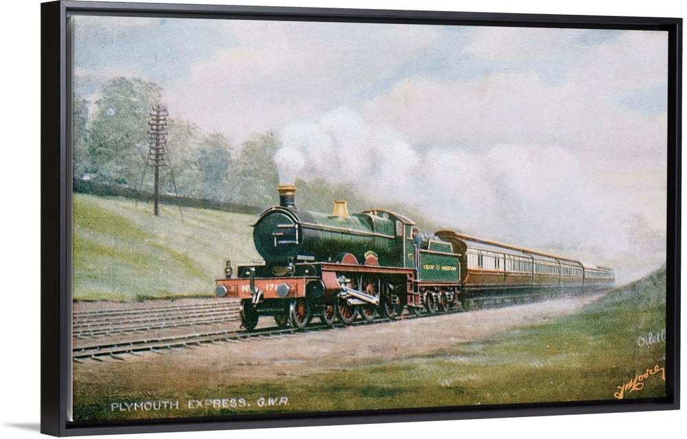 <p>Postcard of the Cornish Riviera Express of the Great Western Railway, hauled by a Saint class 4-6-0 during the period between 1904 and 1907 when it was rebuilt by G. J. Churchward as a 4-4-2 with French design features, many of which he later adopted. The caption reads The finest and most luxurious train in the country. Runs daily between Paddington and Plymouth - 246 miles without a stop in 4 hours 25 minutes. It is equipped with every modern convenience, including valets and ladies' maids.</p>
