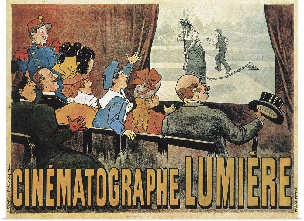 <p>LUMIERE, Louis and Auguste. Poster advertising the showing of L'Arroseur Arrose (The Waterer Watered) (1895-1896) with the Lumiere cinematographe at the basement of the Grand Cafe in Paris. Drawing. FRANCE. ILE-DE-FRANCE. PARIS. Paris. -</p>