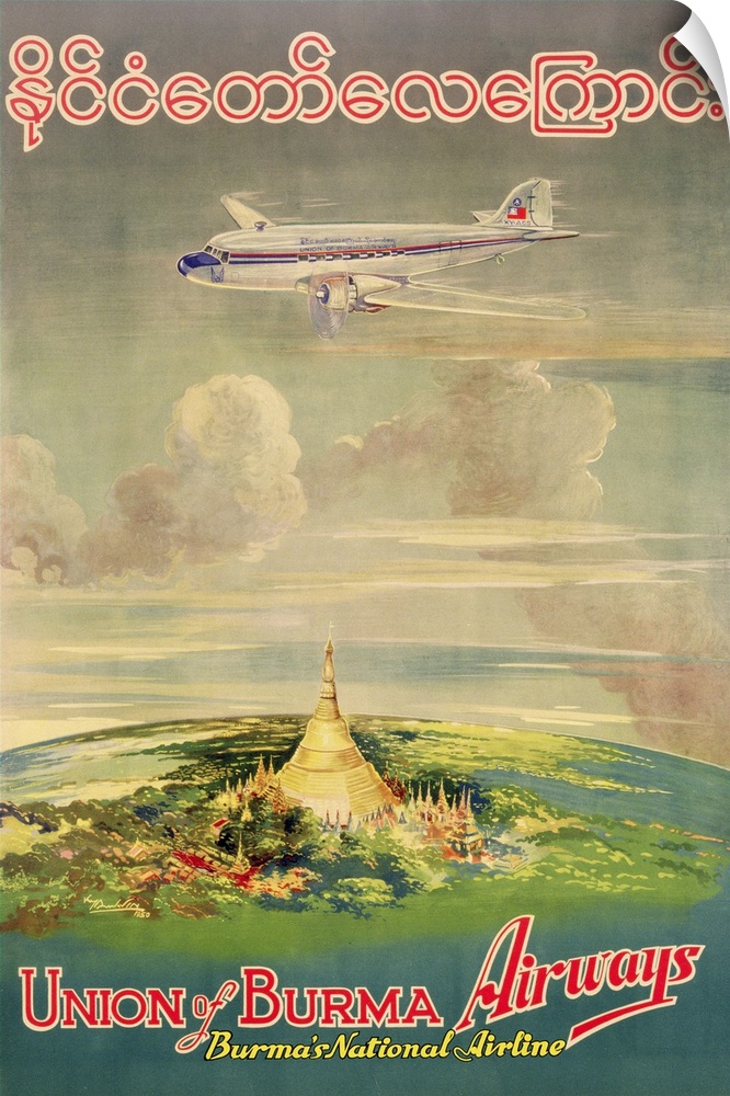 Burmese School Transportation Airplane Vintage Art Vintage Advertising Posters Transportation