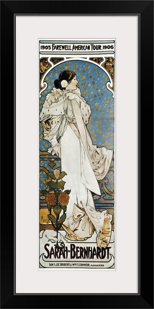 <p>MUCHA, Alphonse Maria (1860-1939). Farewell American Tour of Sarah Bernhardt. 1905. Poster advertising the American tour of Sarah Bernhardt: Farewell American Tour 1905-1906. Modernism. Painting. -</p>