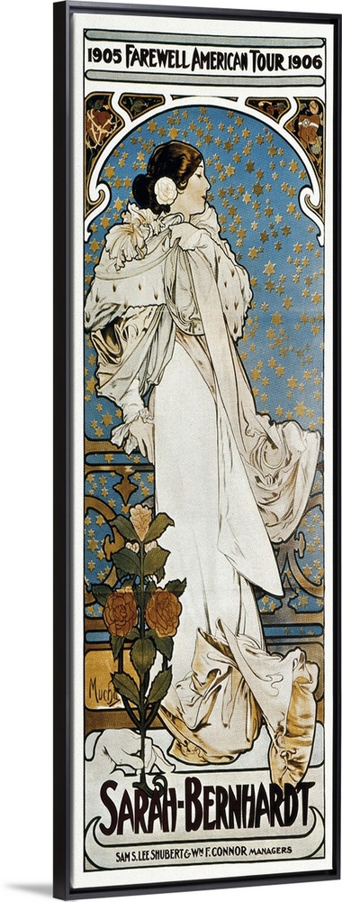 <p>MUCHA, Alphonse Maria (1860-1939). Farewell American Tour of Sarah Bernhardt. 1905. Poster advertising the American tour of Sarah Bernhardt: Farewell American Tour 1905-1906. Modernism. Painting. -</p>