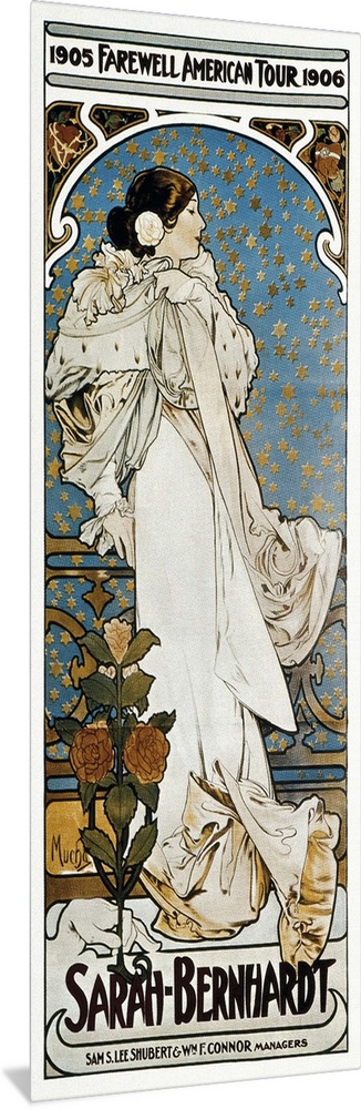 <p>MUCHA, Alphonse Maria (1860-1939). Farewell American Tour of Sarah Bernhardt. 1905. Poster advertising the American tour of Sarah Bernhardt: Farewell American Tour 1905-1906. Modernism. Painting. -</p>