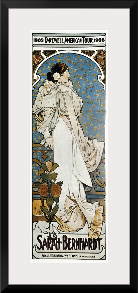 <p>MUCHA, Alphonse Maria (1860-1939). Farewell American Tour of Sarah Bernhardt. 1905. Poster advertising the American tour of Sarah Bernhardt: Farewell American Tour 1905-1906. Modernism. Painting. -</p>