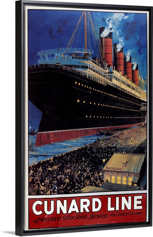 <p>Poster for transatlantic crossings Cunard Line linking Liverpool to New York and Boston via Queenstown, 1908, Library of the Arts Decoratifs, Paris</p>