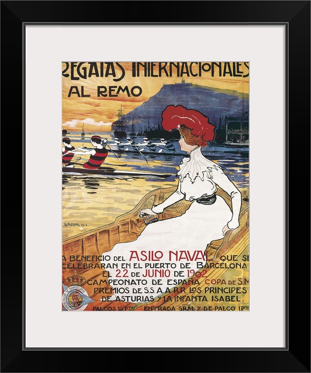<p>LLAVERIAS i LABRO, Joan (1865-1938). International Oar Regattas. 1902. Poster advertising the sport event held in the port of Barcelona the 22nd June 1902. Modernism. Painting. -</p>