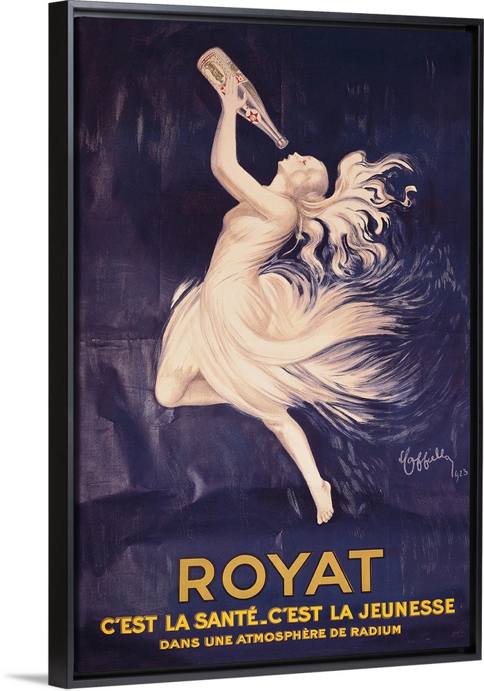 <p>Royat, by Leonetto Cappiello, 20th Century, cm 200 x 130 - Italy, Veneto, Treviso, Treviso, L. Bailo Civic Museum, Salce Collection. All. Advertisement poster slogan bottle water woman ethereal dress robe garment veil transparency inscriptions white blue</p>