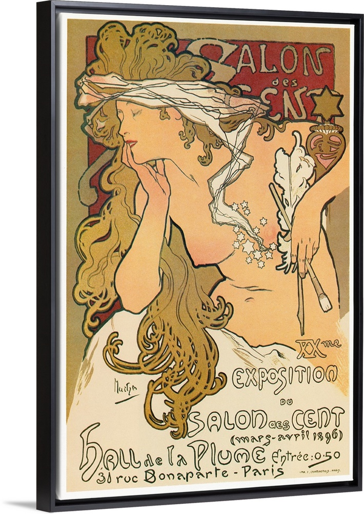 <p>Poster for the 20th exhibition at the Salon des Cent in Paris, France. Lithograph by Alfons Maria Mucha, 1896.</p>