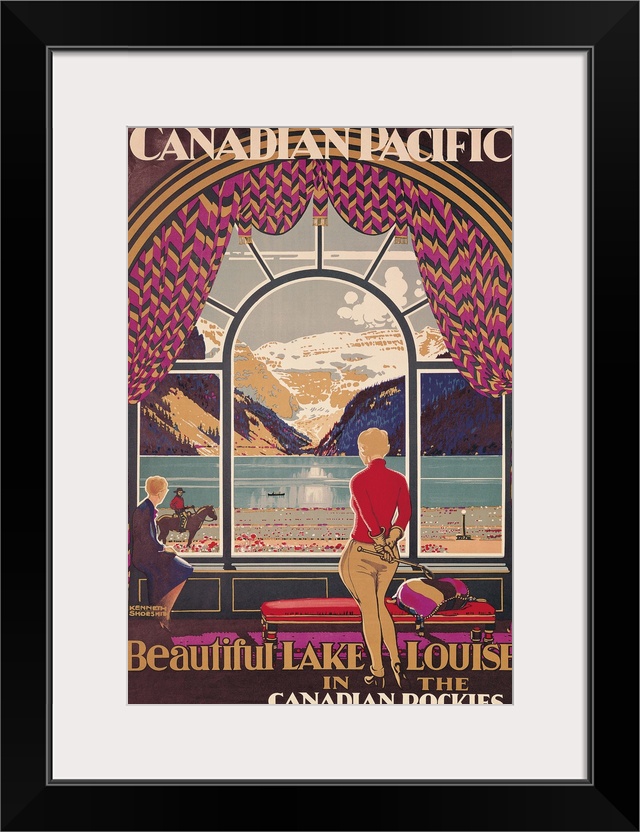 <p>Poster of Canadian Pacific, by Kenneth Shoesmith, 19th Century, cm 100 x 61 - Italy, Veneto, Treviso, Treviso, L. Bailo Civic Museum, Salce Collection. All. Poster advertising stained glass window panorama lake mountains horse knight women small figures c</p>