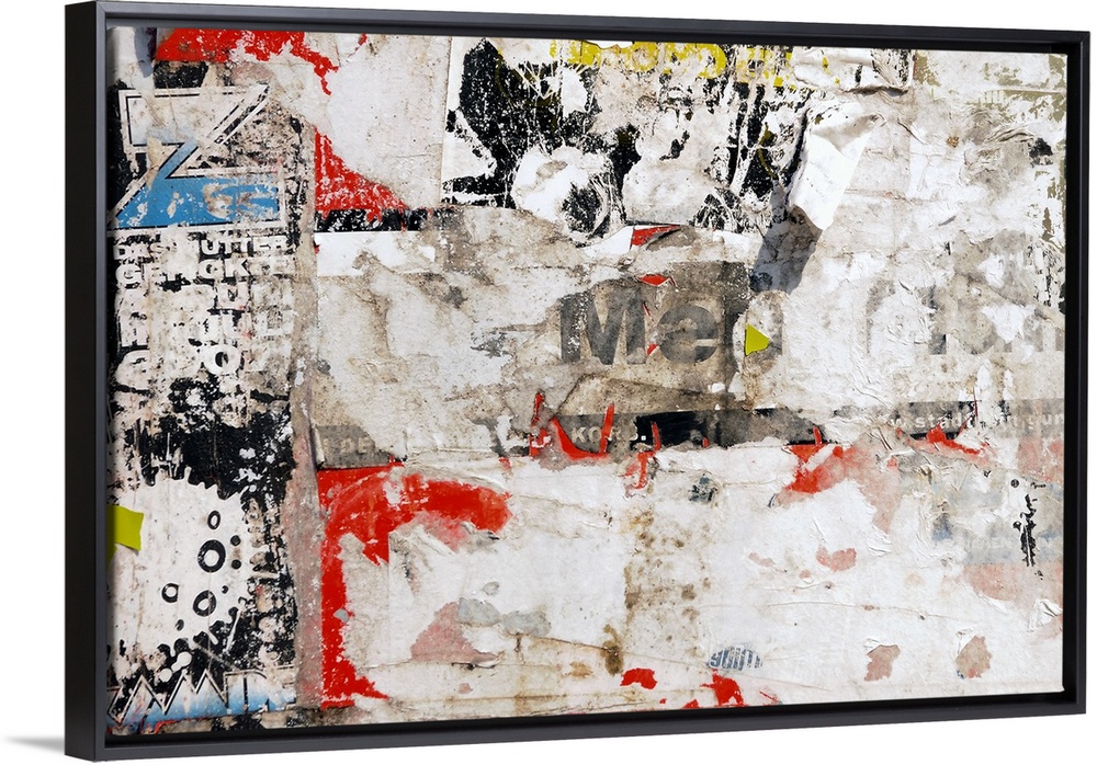<p>Ripped posters peeling off of a wall.</p>