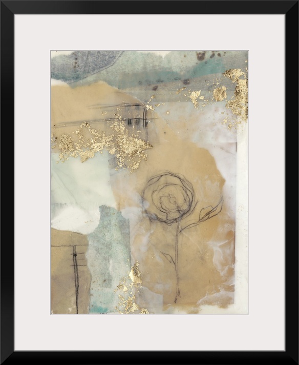 <p>Abstract contemporary artwork in grey and tan with a stylized flower design.</p>