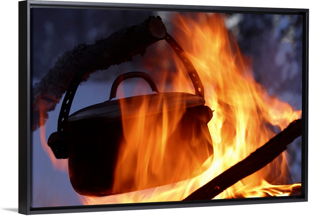 <p>Pot cooking over campfire</p>