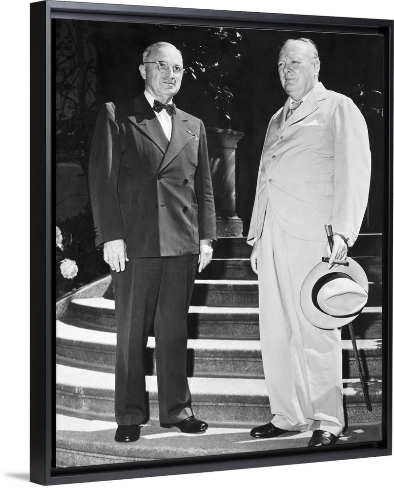 <p>President Harry S. Truman of the United States and Prime Minister Winston Churchill of Great Britain photographed at Potsdam, Germany, on 16 July 1945.</p>