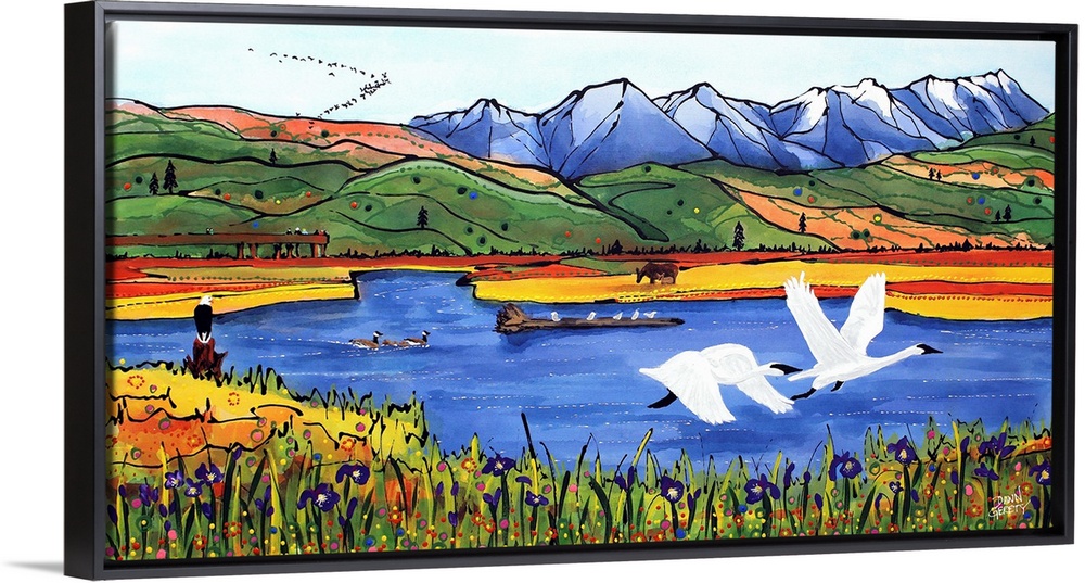<p>Dawn Gerety was born in Sydney, Australia and raised across the globe in Girdwood, Alaska. As a lifelong Alaskan, she is moved by the natural splendor that has surrounded her her entire life – mountains, wildlife, rivers, wildflowers and outdoor activities. Dawn paints these images and creates her own language with a swipe of color or a rigid line of dots. She injects a fiercely whimsical vitality to Alaskan icons the only way she knows how.</p>