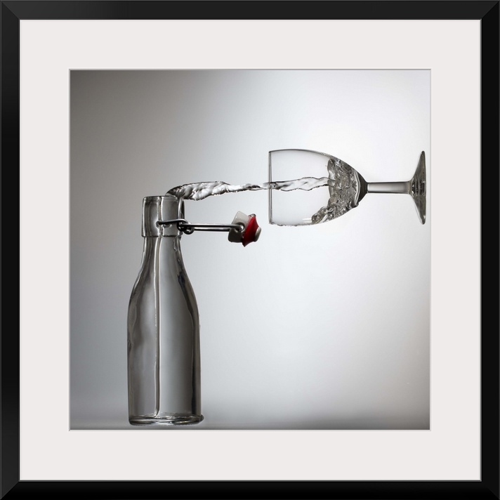 <p>Conceptual image of water being poured from a bottle into a glass, appearing sideways.</p>