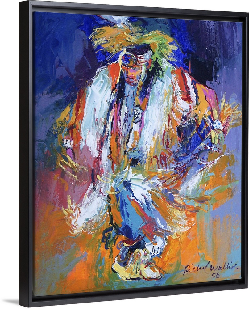 <p>Contemporary vibrant colorful painting of a traditionally dressed native American.</p>