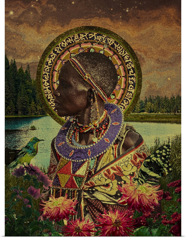 African-American Art Figurative Afrofuturism Wall Art Art Figurative Earthy Opulence Florals Graphic Art Mixed Media Art Dekimbe Murray Figurative Africa Surrealism