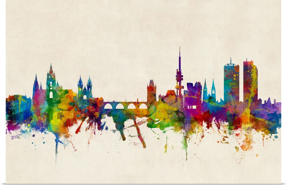 <p>Watercolor art print of the skyline of Prague, Czech Republic (Praha).</p>