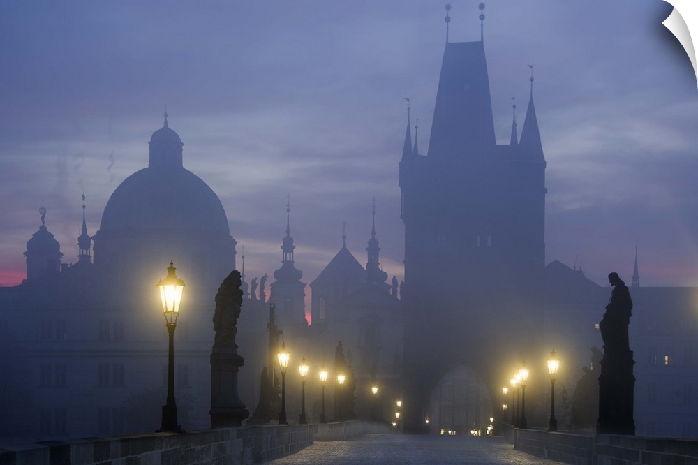 <p>Charles Bridge in Prague in the early morning mist.</p>