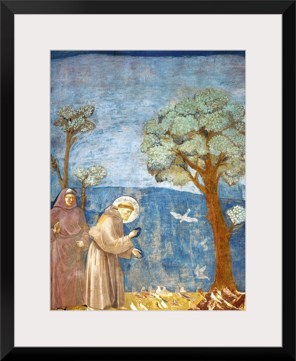 <p>The Preaching to the Birds, by Giotto, 1297 - 1300, 13th Century, fresco, cm 270 x 230 - Italy, Umbria, Perugia, Assisi, Upper Basilica of San Francesco, nave. All. St Francis preaches to the birds tree Franciscan friar blue panel. (344538) Everett Collec</p>