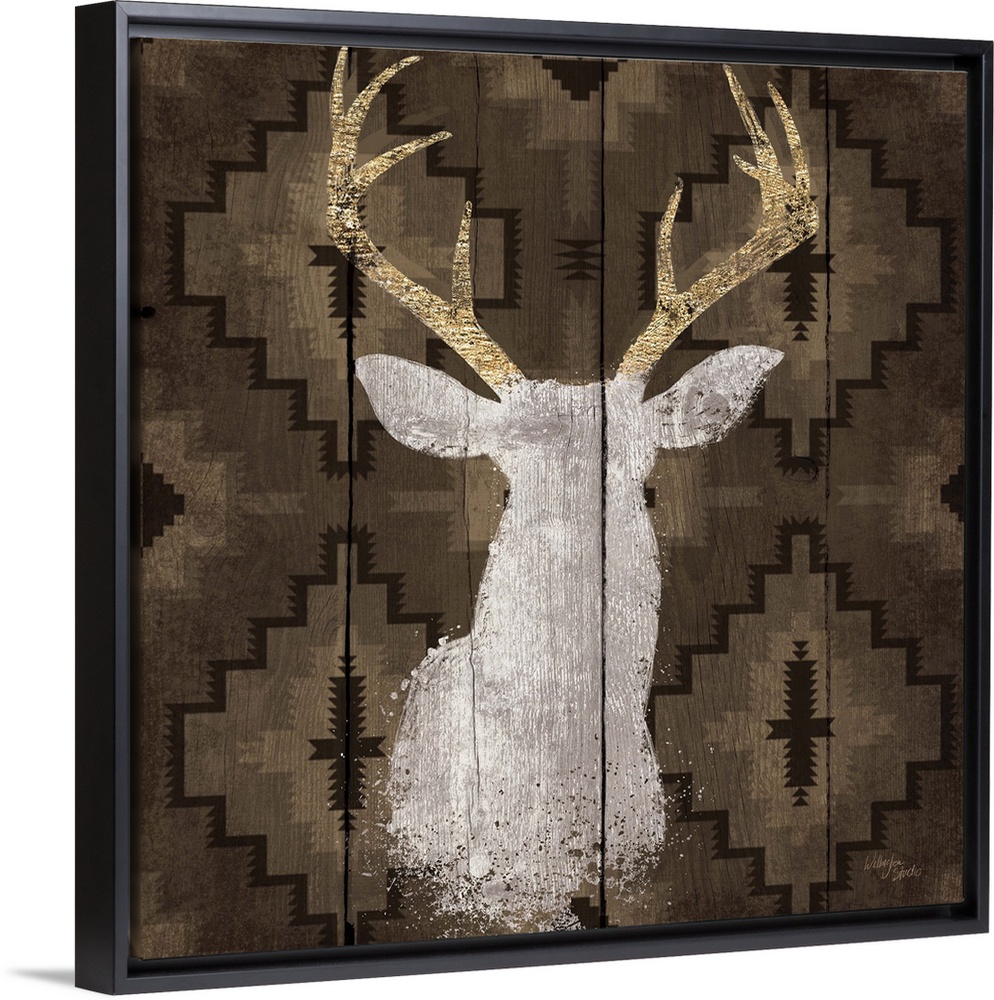 <p>Stag head silhouette against a rustic looking native american pattern perfect for a lodge in the woods.</p>