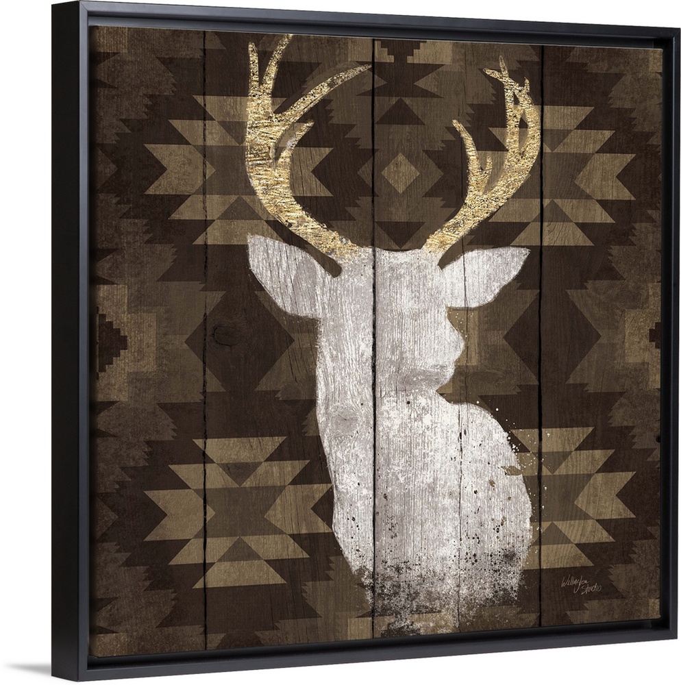 <p>Stag head silhouette against a rustic looking native american pattern perfect for a lodge in the woods.</p>
