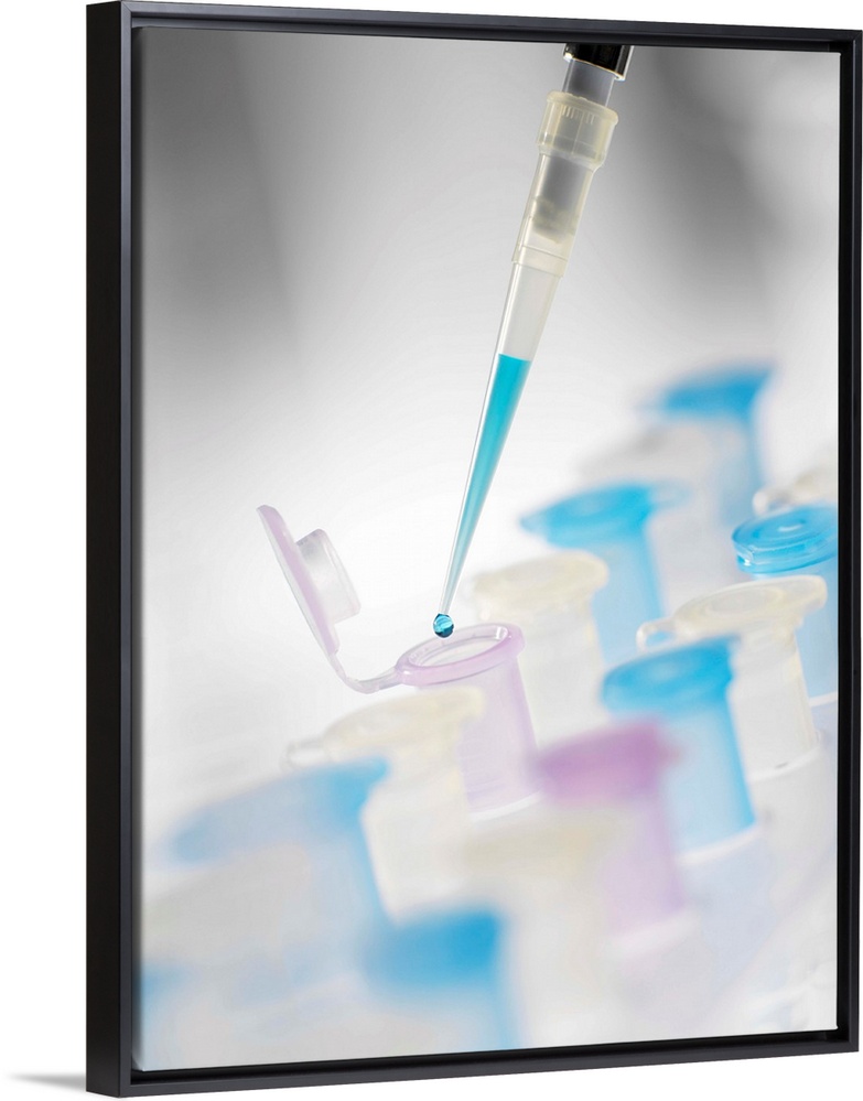 <p>Preparing sample vials. Pipette being used to add a liquid to a vial. This type of equipment is used in a wide range of laboratory work, from analysis of DNA and other samples, to medical research.</p>