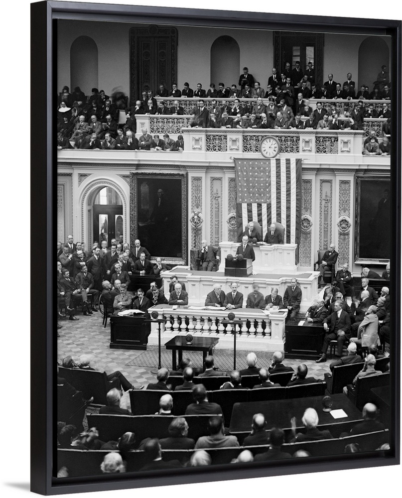 <p>President Calvin Coolidge delivering his first message to Congress on Dec. 6, 1923. He assumed the Presidency following the death of Warren Harding on August 2, 1923.</p>