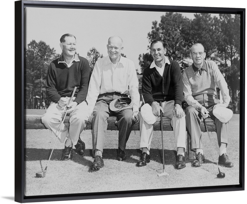 <p>President Dwight Eisenhower with Golf Champions at Augusta, Georgia, c. 1953. L-R: Byron Nelson, the President, Ben Hogan, and Clifford Roberts.</p>