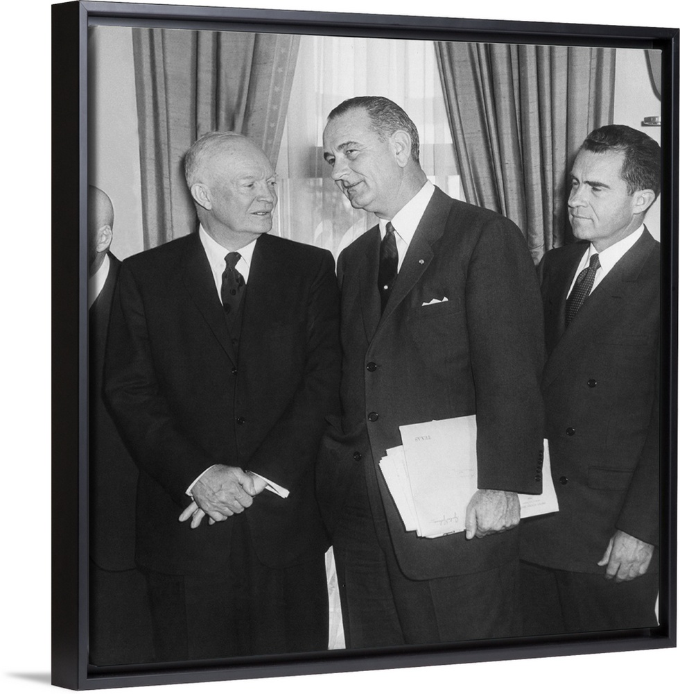 <p>President Eisenhower and future Presidents Lyndon Johnson and Richard Nixon. White House Oval Office, March 6, 1959. Johnson was Senate Majority Leader and Nixon served as Eisenhower's Vice President.</p>