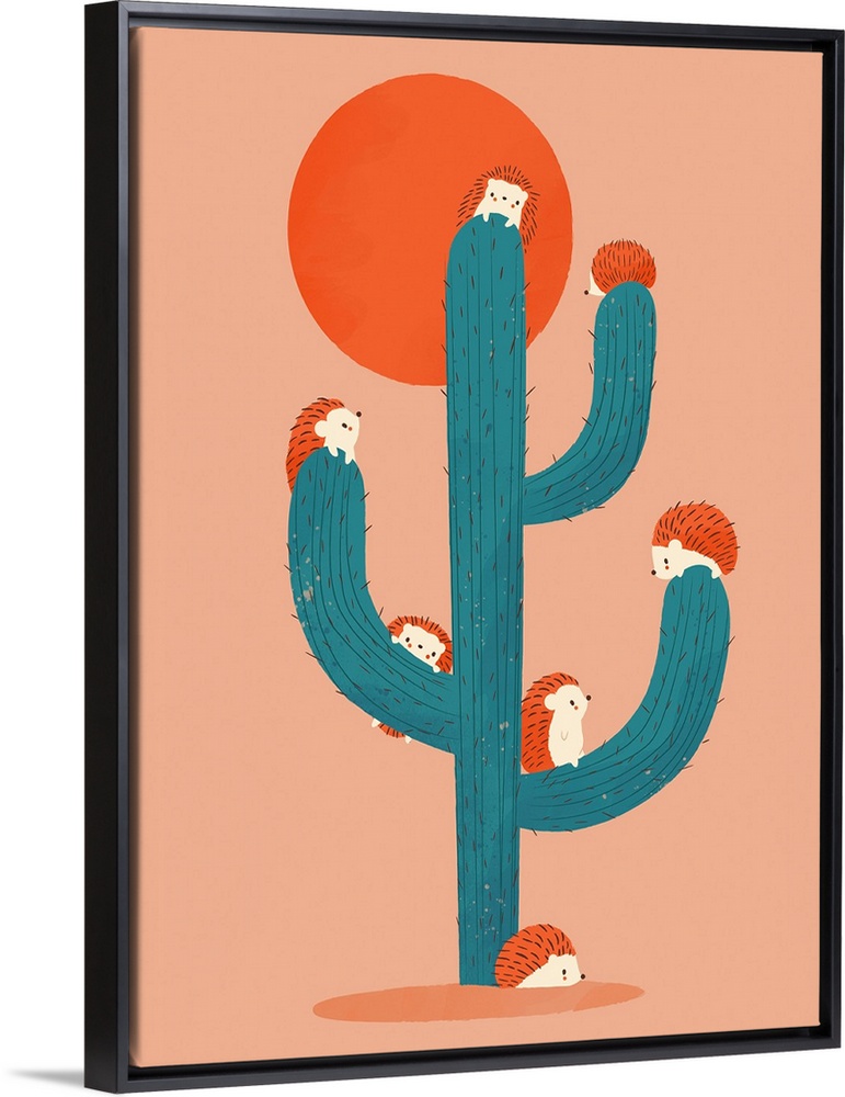 Art Eclectic Contemporary Art Punchy Pastels Cactus Succulents Graphic Art Orange Wall Art Wildlife Hedgehog