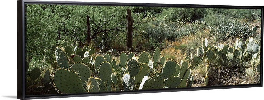 <p>Prickly pear cacti and mesquite plants in a field, Peach Springs Canyon, Grand Canyon National Park, Arizona, USA</p>