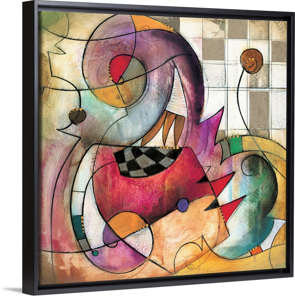 <p>Primo II by Eric Waugh. A colorful square abstract painting of striking shapes against a checkered background.</p>