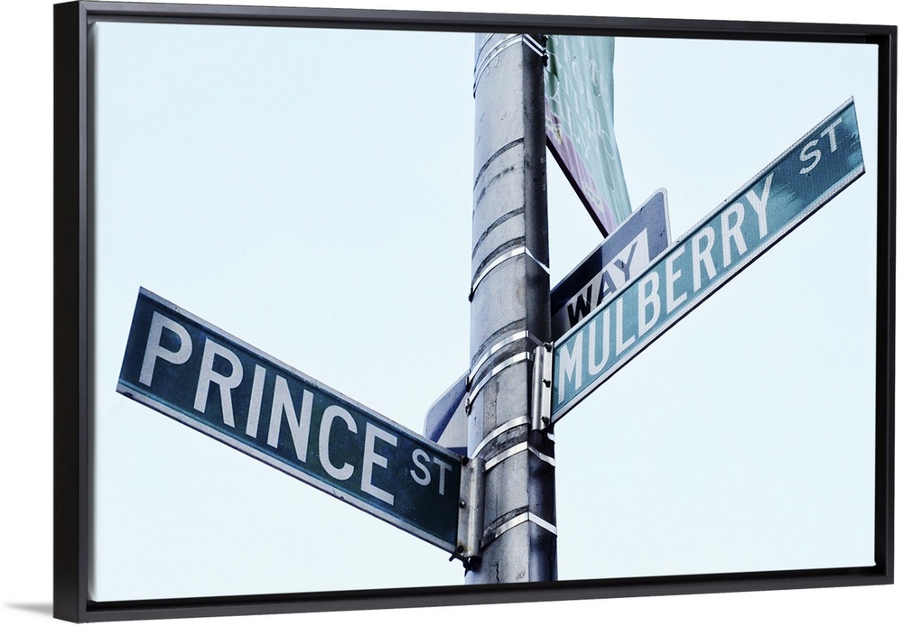 <p>Street signs for Prince Street and Mulberry Street in Little Italy, Manhattan, New York City.</p>